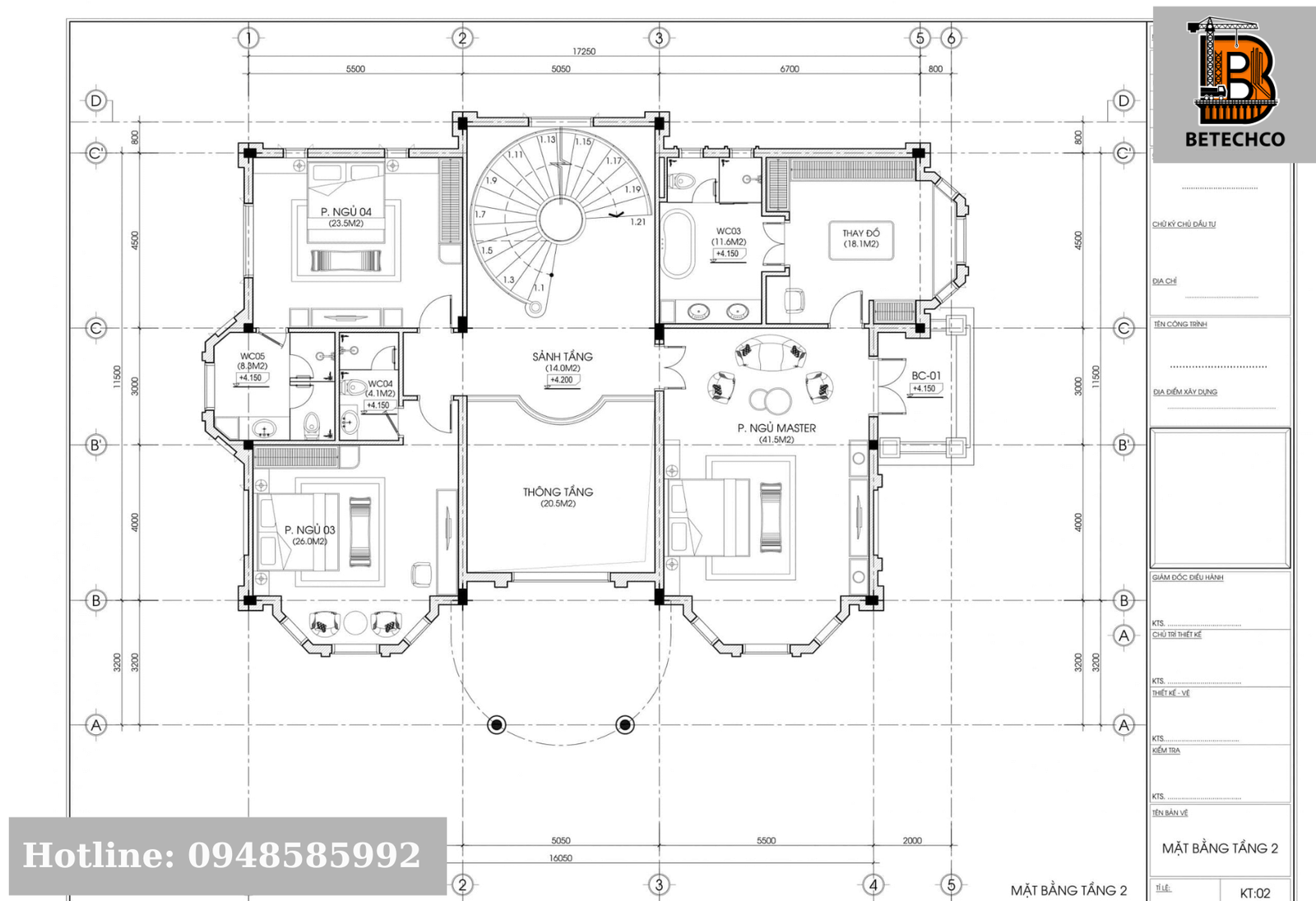 Betechco luôn tự tin mang đến cho mọi quý khách hàng sự hài lòng và tin tưởng trong thiết kế và thi công tất cả các hạng mục công trình. Với những kinh nghiệm và chuyên môn sẵn có, chúng tôi luôn nỗ lực từng ngày mang đến khắp các tỉnh thành những vẻ đẹp sáng tạo mà chất lượng trong các công trình xây dựng. Gọi ngay cho Betechco theo Hotline: 0948585992 – 0979302216 để biết thêm vê dịch vụ Thiết kế và Thi công trọn gói lâu đài, dinh thự.