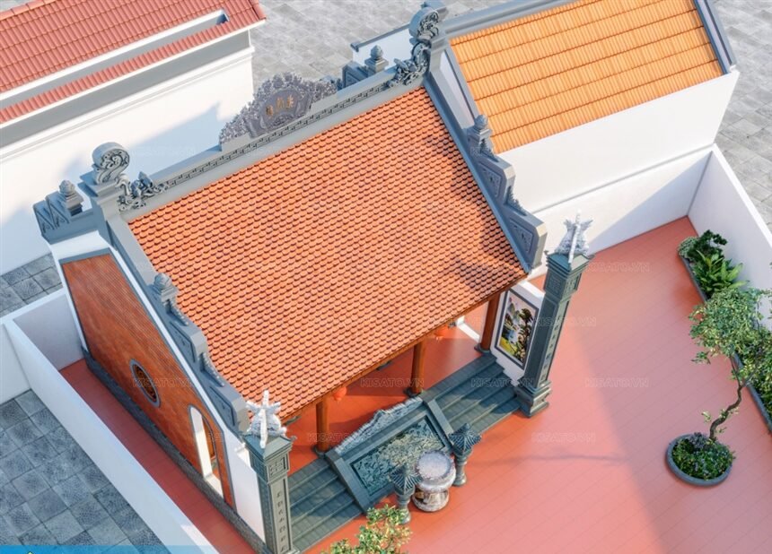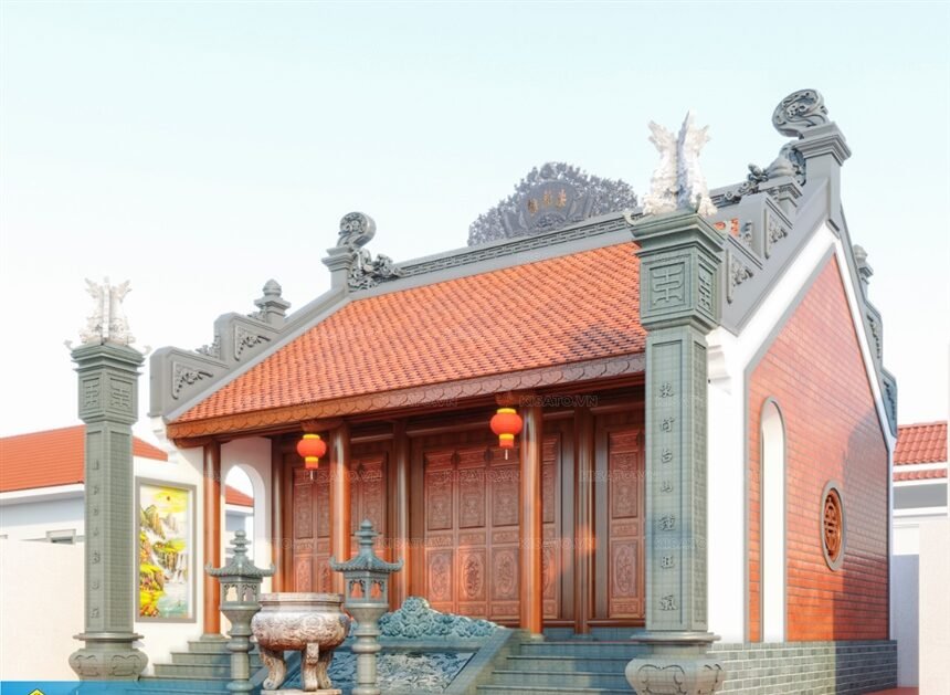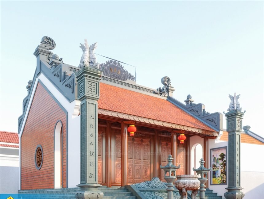 Phối Cảnh 3D Từ Đường Bê Tông Giả Gỗ Do BETECHCO Thiết Kế Và Thi Công Trọn Gói